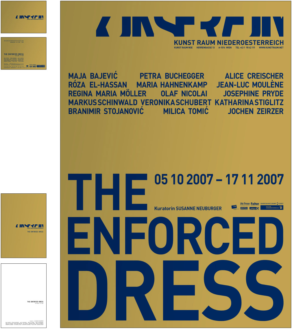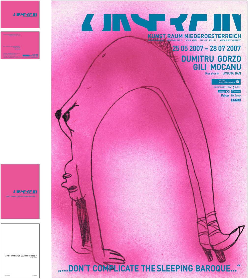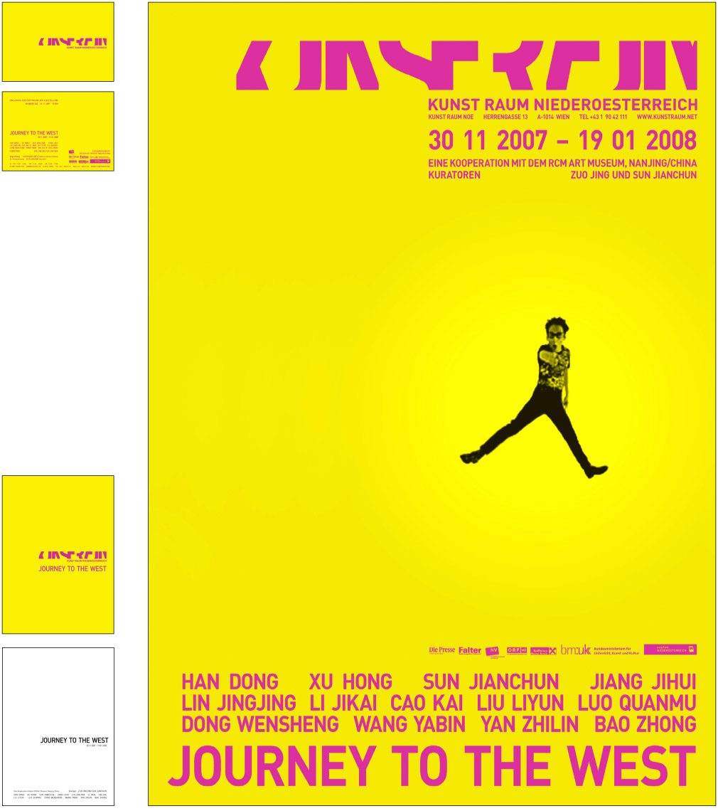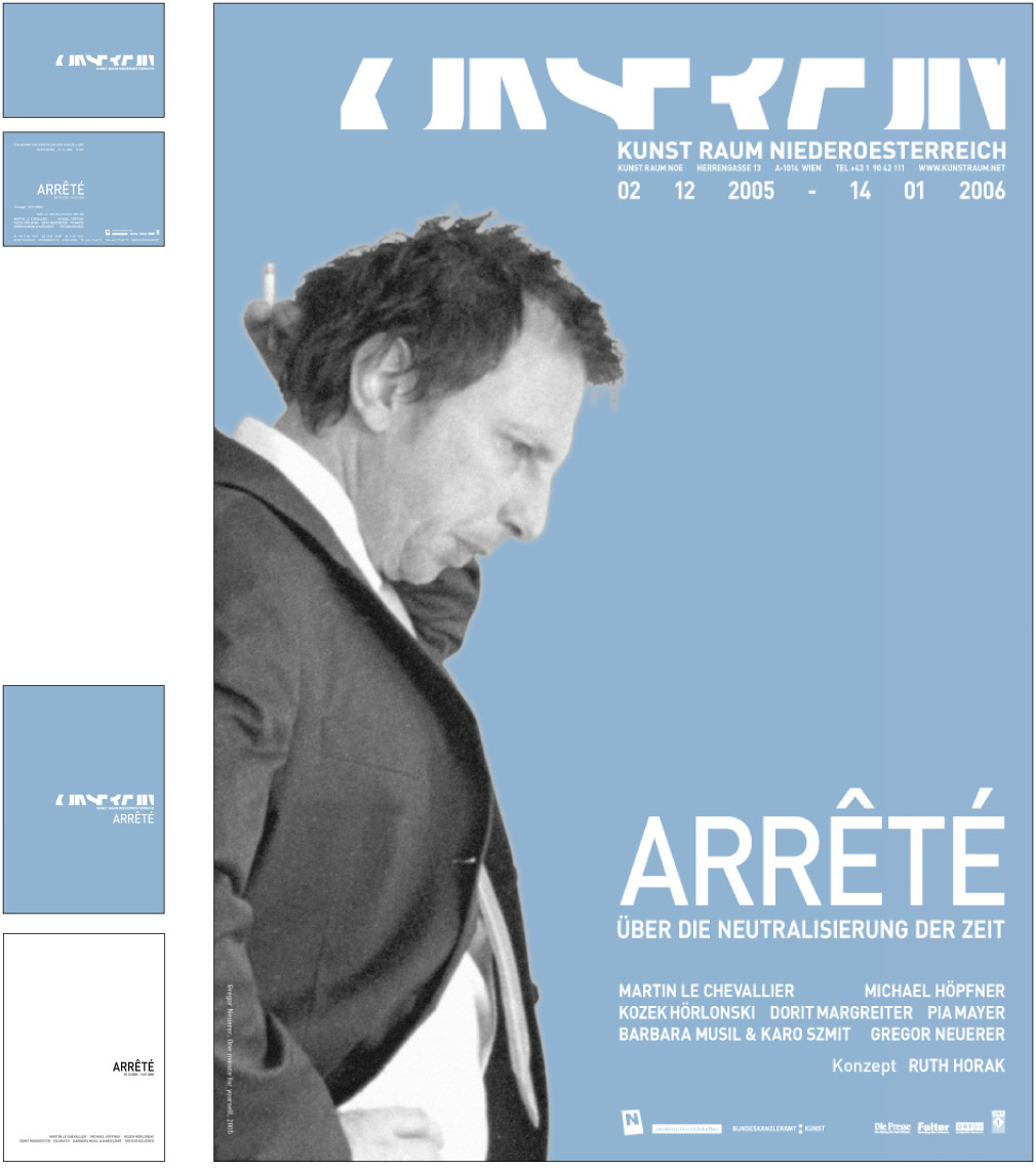 From 2005 till 2009 and ongoing - we designed after developing the corporate identity for the gallery ‘Kunstraum Noe’ [Art space Lower Austri]a –19 exhibitions packages. An exhibition package contains the design of a poster, an invitation card, a catalogue (1 to 20 artist), advertisements and the website. [the site has been relaunched]